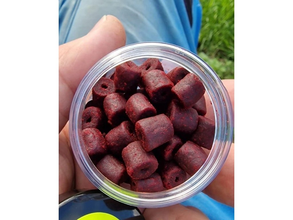 Jsou to o silně dipované pelety s dírou. Na pelety skvěle reagují kaprovité ryby, jeseteři, cejni, parmy, plotice, podoustve, karasi atd. Doba rozpadu se pohybuje kolem 1 hodiny. Perfektní nástraha na method feeder. Tento produkt je "pokračovatelem" našich tradičních chytacích pelet v balení 250 g. Nový menší průměr 8 mm využijí hlavně milovníci chytání na feeder.